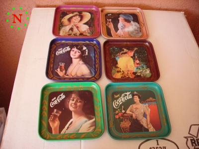 6 Sotto bicchieri con vassoio– riproduzione in scala ridotta dei soggetti di maggior successo dei vassoi della coca cola ( sei stampe in lamiera) originali coca cola (Anno 1996 €.45 Astenersi: perdi tempo- non rispondo a mail e sms. | |||||||